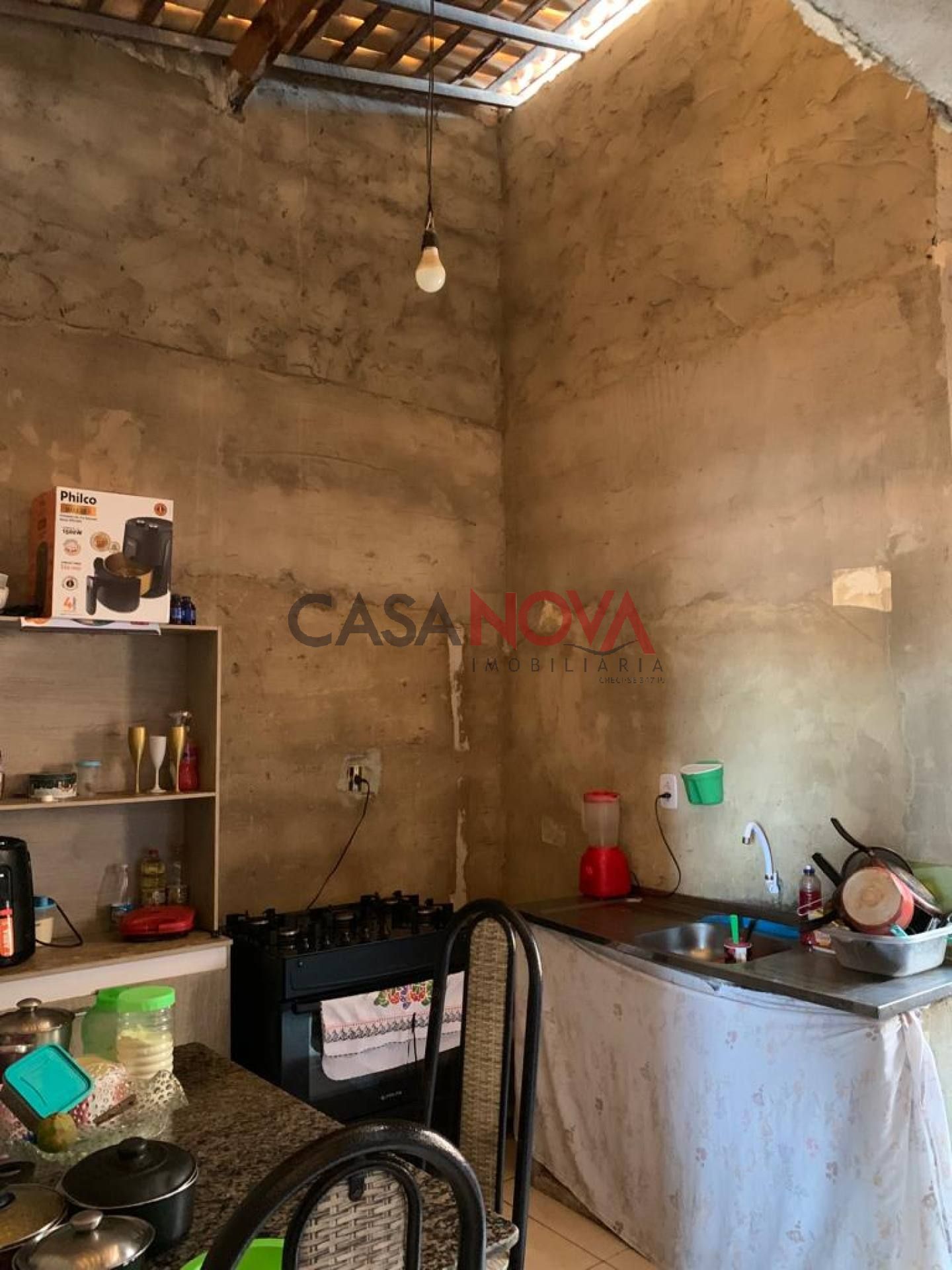 1ª Casa térrea : varanda, sala em L, 1/4, banheiro social, cozinha e área de serviço.